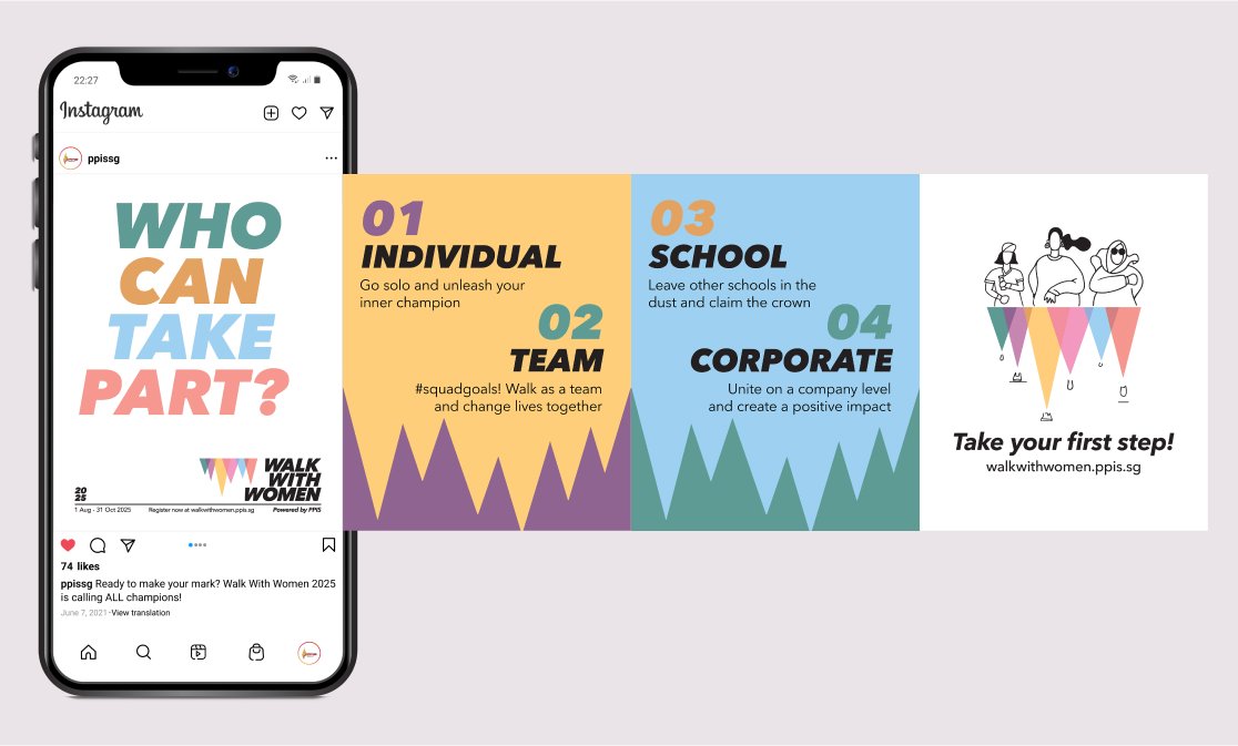 PPIS, the Singapore Muslim Women’s Association, sought to rally the community in a commemorative charity walk that would symbolise support for women and families. But how could we make the walk more inclusive, future-facing and participatory especially for younger, digital-native audiences and time-strapped supporters?